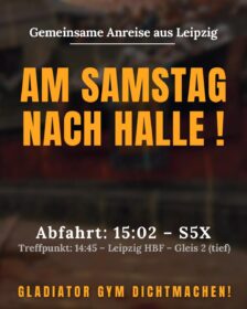 Gemeinsame Anreise nach Halle Am 7. März soll in Halle zum ersten Mal ein Kampfsportevent in der Gladiator Fight Academy stattfinden. Seit Januar 2025 werden […]