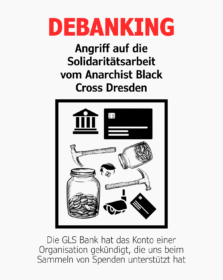 Mitte November teilte die GLS Bank dem Verein, der uns seit Jahren verbunden ist und hilft Spenden zu sammeln, mit, dass dessen Bankkonto fristlos gekündigt wurde. Gründe wurden dabei nicht genannt. Dem Verein wurde lediglich mitgeteilt, dass es Regelungen gäbe, die es der Bank erlauben, Bankkonten aus „triftigem Grund“ zu kündigen. Das Anarchist Black Cross Dresden* sammelt seit Jahren Spenden […]